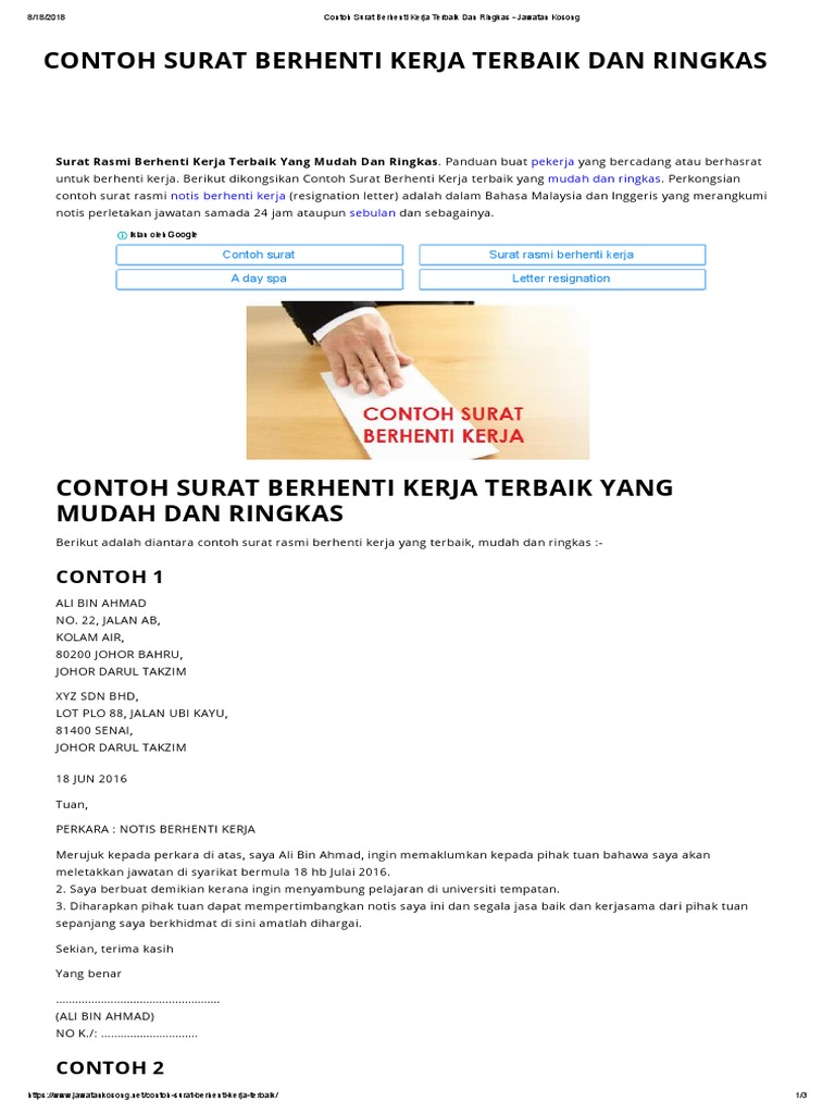 Contoh Surat Berhenti Kerja Terbaik Dan Ringkas Pdf